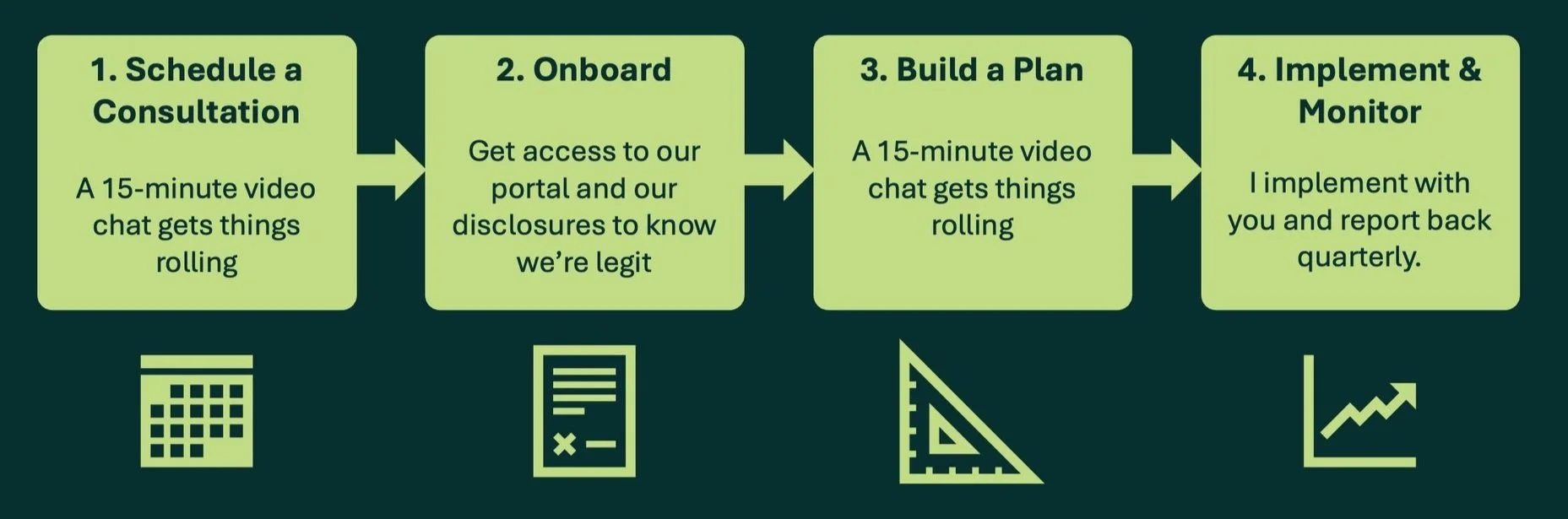 This is not a one-time conversation. I’ll guide you, step by step, as you implement your plan